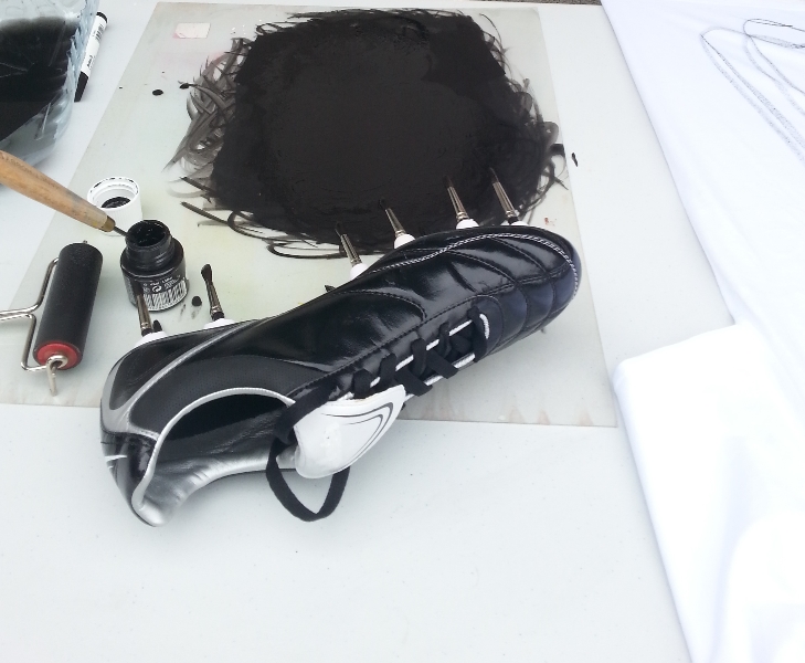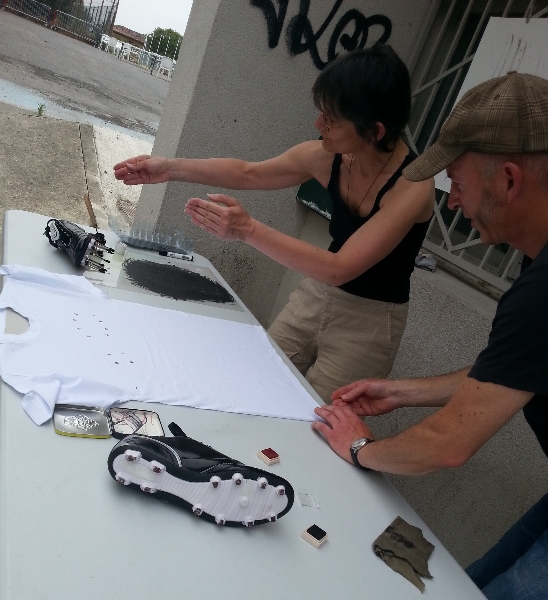 en juin 2014 en duo avec Carl Hurtin : calligraphie avec une chaussure de foot